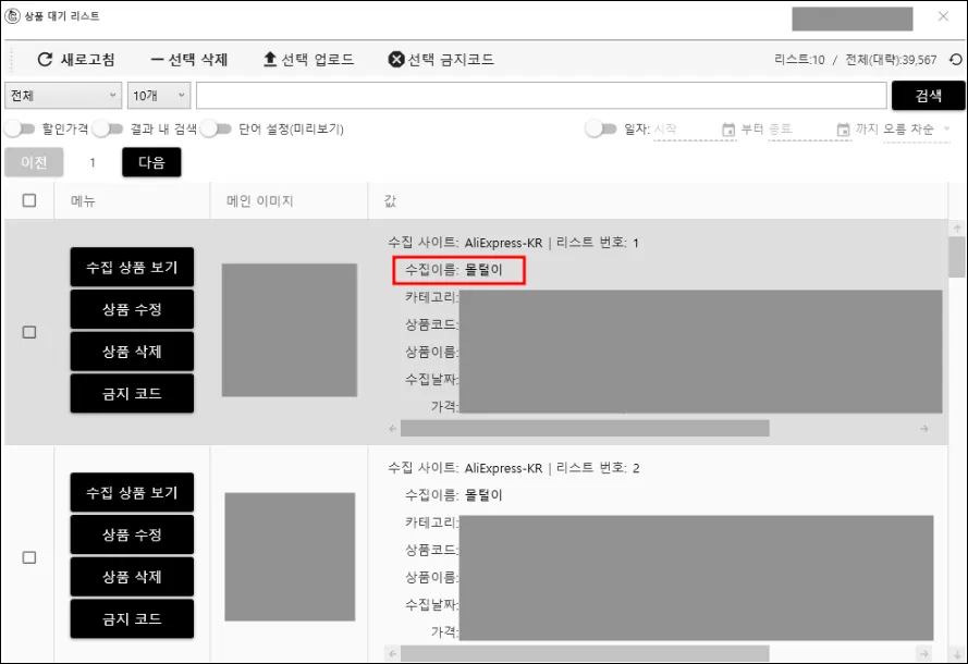 페이지 상품 수집용 수집 리스트 생성하는 방법 (