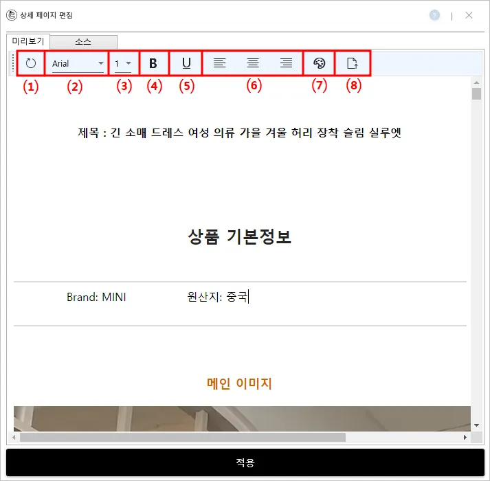창 설명 : 반자동 기능을 통한 개별 상품의 상세페이지 수정