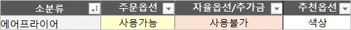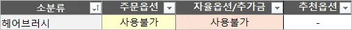 주문옵션이 사용 불가하여, 옵션 자체를 설정할 수 없습니다.
