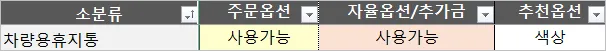 옵션을 아예 사용할 수 없는 카테고리