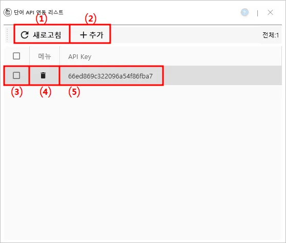창 접속 방법 : [리스트 관리] - [상품 관리] - [단어 관리] - [단어 API 연동]