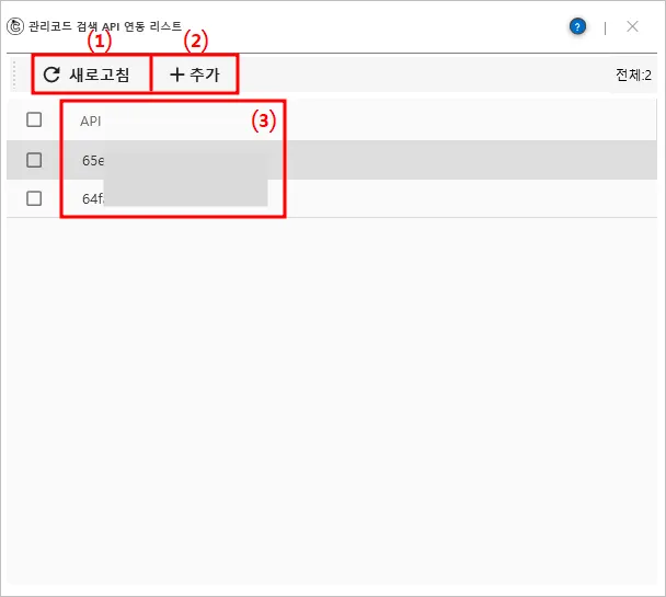 API는 각 캐시데이터 계정 업로드 API 값입니다.