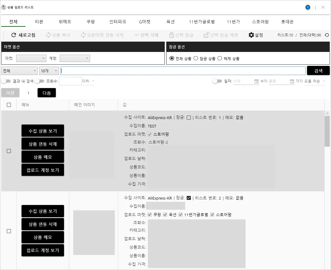 5. 업로드에 성공한 상품들은 [리스트 관리] - [상품 관리] - [업로드 리스트]를 클릭해