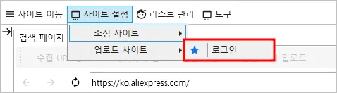 (1) [사이트 설정] - [업로드 사이트] - [로그인]