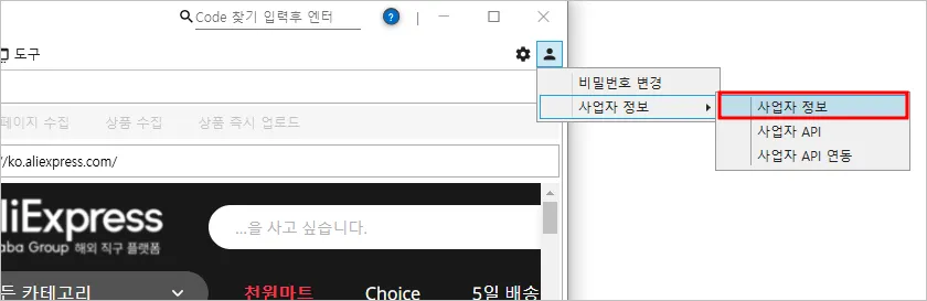 1. 우측 상단 사람 아이콘 - [사업자 정보] - 사업자 정보를 클릭합니다.