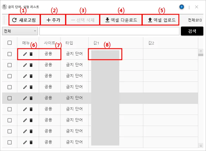 지원하는 엑셀 양식을 통해 금지 단어 일괄 추가